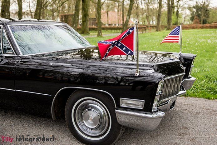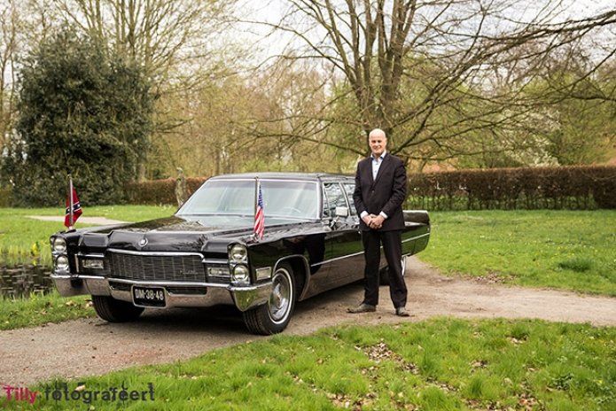 Deze prachtige Cadillac Fleetwood limousine uit 1968 is sinds kort ook beschikbaar voor trouwerijen en gala avonden. Het betreft hier een heel zeldzaam model, er zijn er om precies te zijn 805 van gebouwd. Het is een voormalige ambassade auto. Deze z.g. serie 75 model is voorzien van alle denkbare luxe wat er in die tijd mogelijk was. Niet zo gek als je bedenkt dat dit soort wagens veelal gebruikt werden door presidenten, staatshoofden en ambassades. Het moest uiteraard een super representatieve uitstraling hebben, in dit geval ook uitgerust met 2 Amerikaanse vlaggen. Uiteraard zijn deze demontabel. Uiterlijk, bekleding en technisch in zeer nette staat,